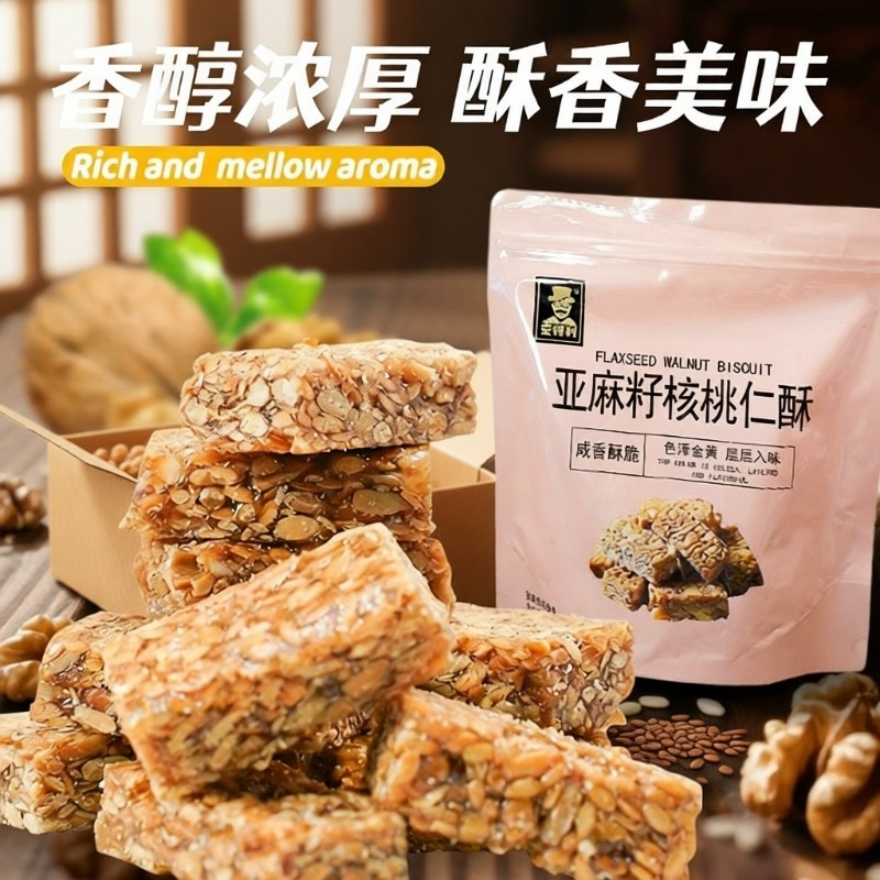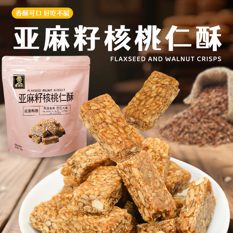 买一送一壹亚麻籽核桃仁酥无蔗糖坚果健康零食饼干糕点解馋好吃