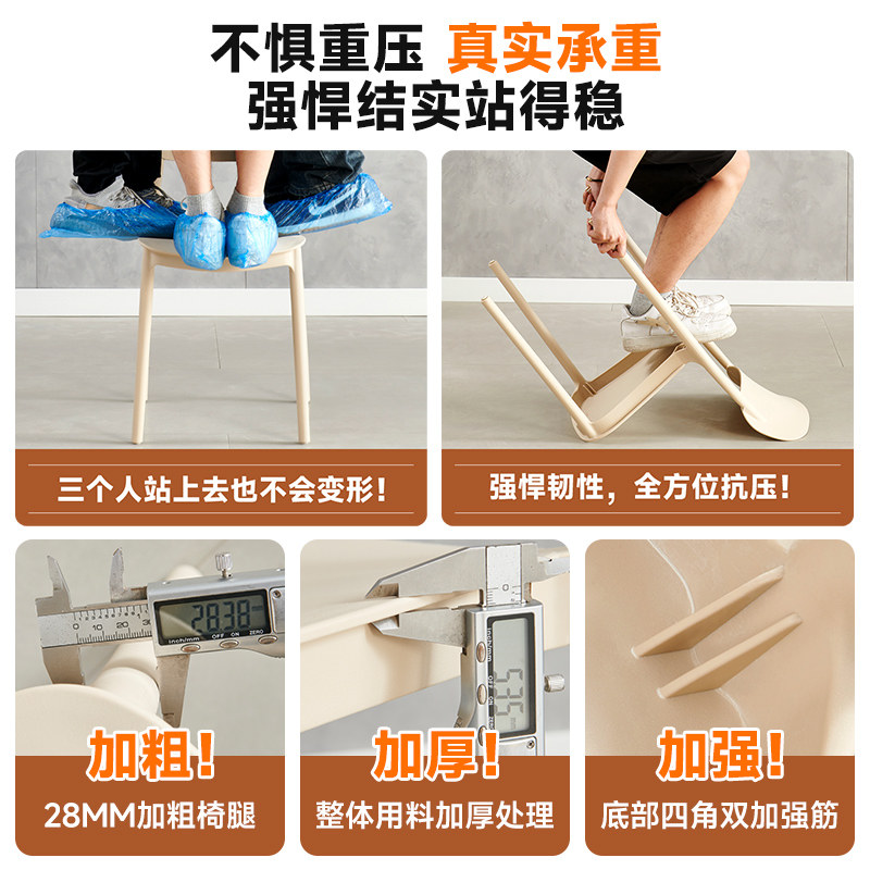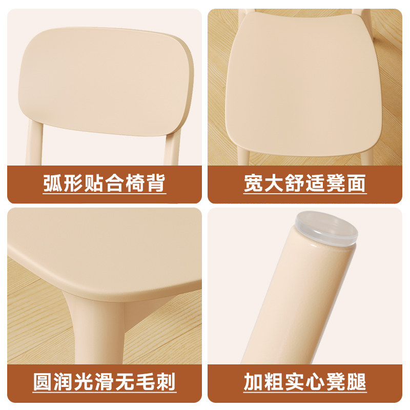 家用加厚塑料椅子餐桌休闲吃饭餐椅网红餐厅可叠放奶油风一体凳子
