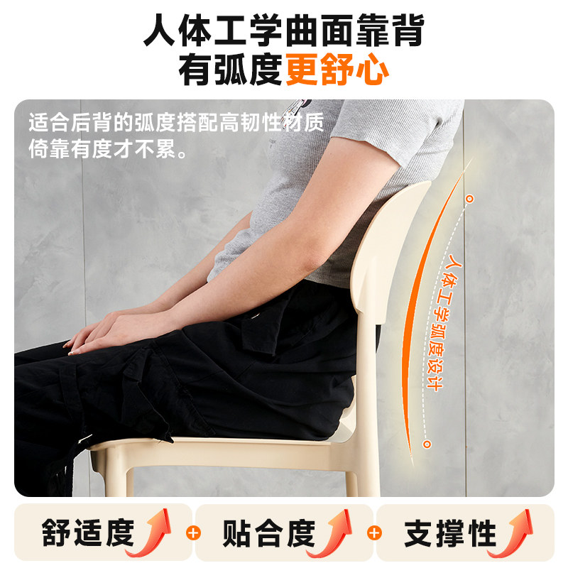 家用加厚塑料餐椅餐桌休闲吃饭椅子现代简约餐厅商用凳子靠背一体
