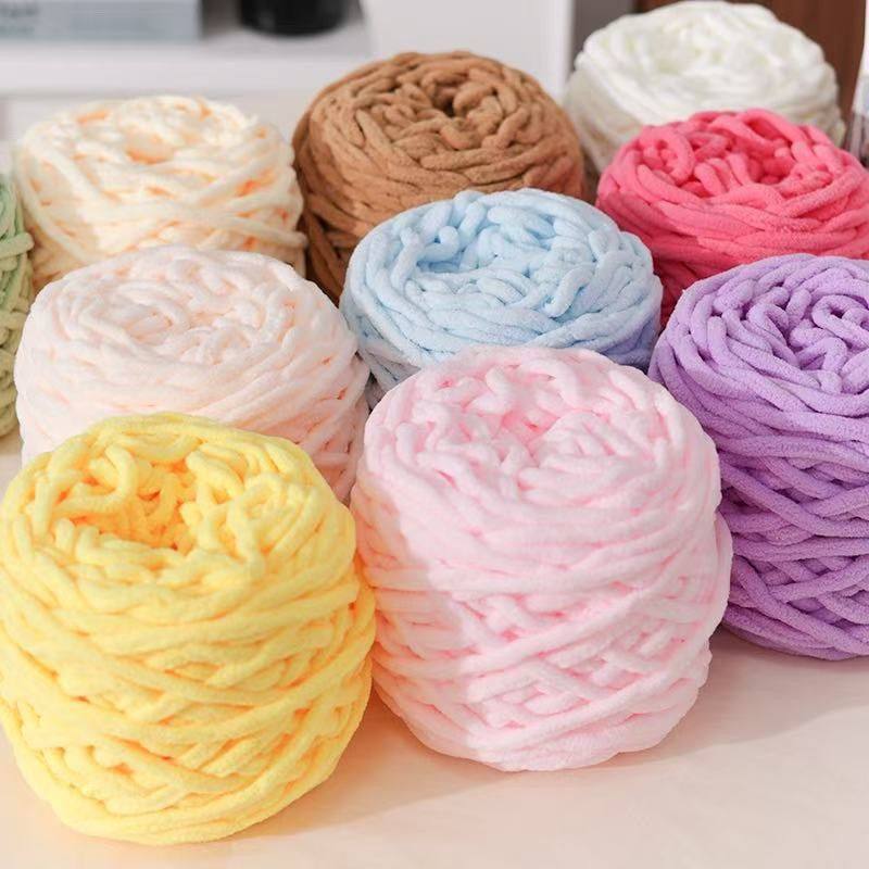 冰条线柔软毛线坐垫手工diy编织勾鞋自织男女围巾钩针拖鞋材料