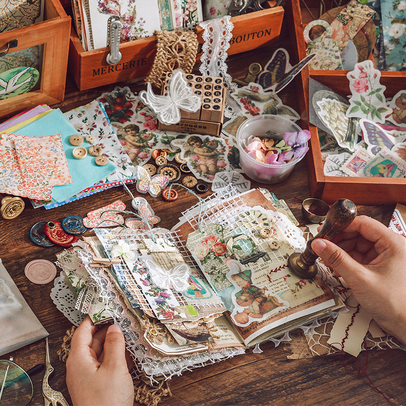 朝雨140件艺术垃圾手帐素材套装大礼包复古便签贴纸diy拼贴材料包