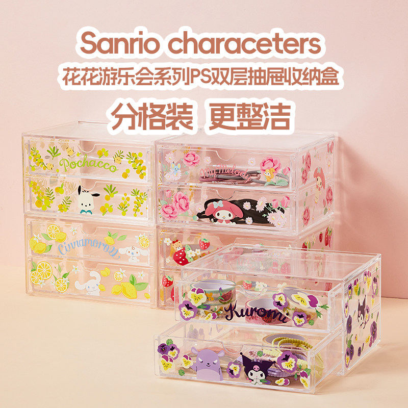 MINISO名创优品三丽鸥抽屉收纳盒办公室书桌置物架化妆品整理箱子