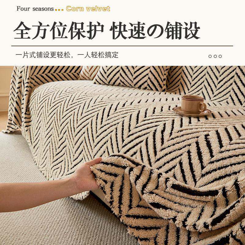 冬季沙发盖布舒绒棉防猫抓全盖加厚轻奢风沙发巾防滑沙发套罩盖毯