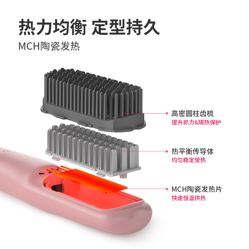 TYMO第4代Lite无线直发梳夹板高颅顶便携负离子造型梳不伤发礼物