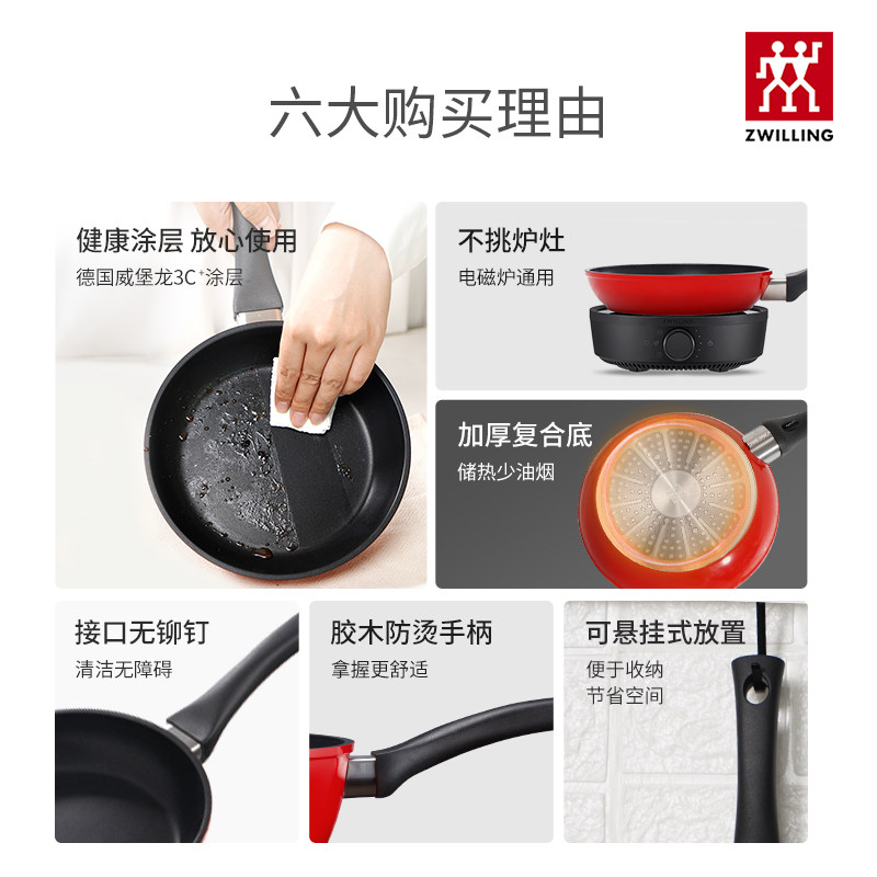 德国双立人style20cm不粘煎锅煎盘平底锅家用电磁炉燃气适用