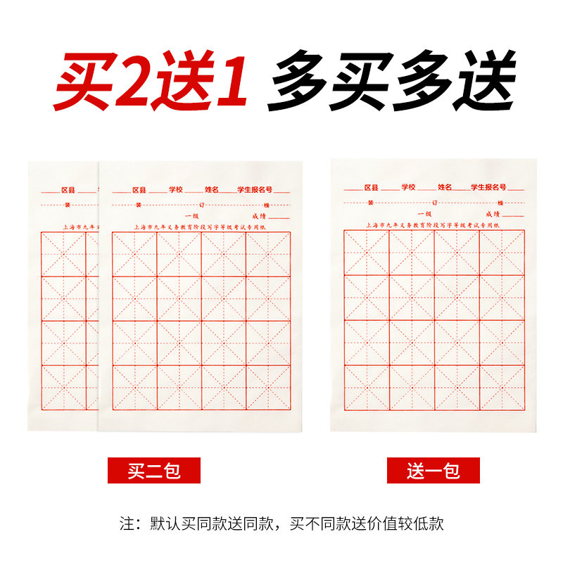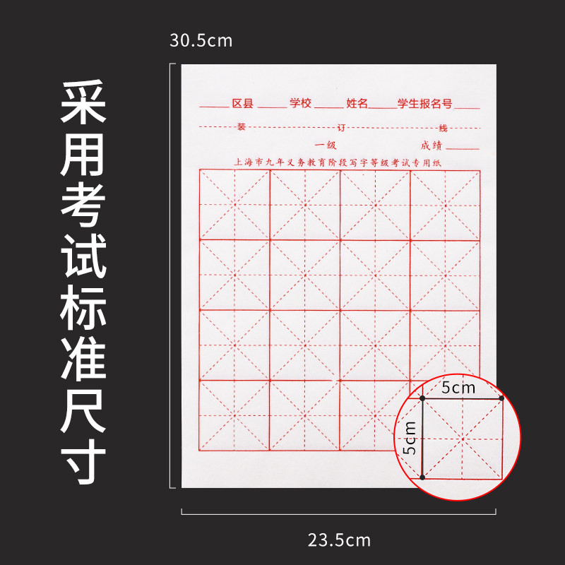 上海市九年义务教育阶段毛笔考试专用纸小学生写字等级书法练习纸真题练字专用初学者入门临摹描红入门毛笔帖