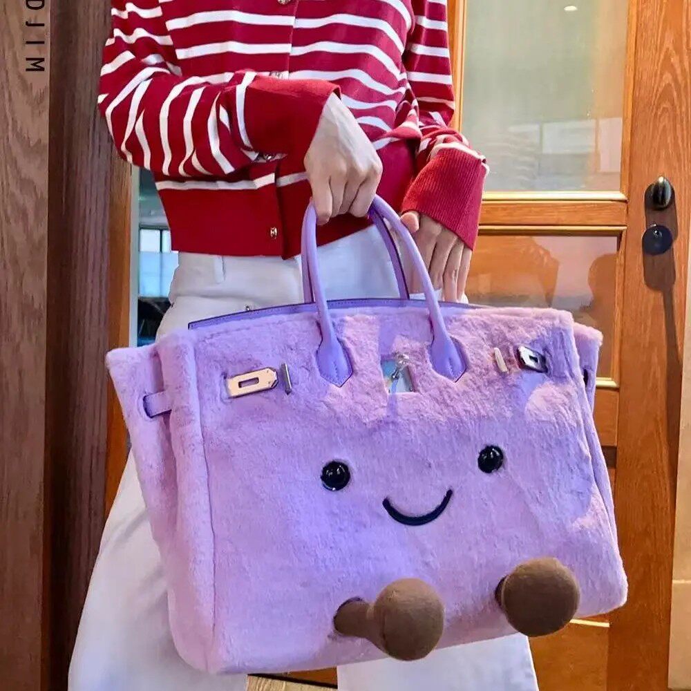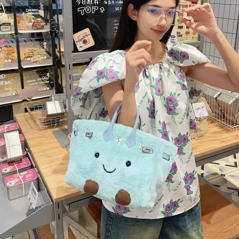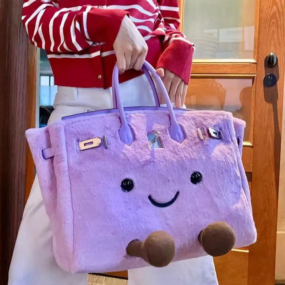 毛绒精致可爱手提铂金包2026女大容量单肩斜挎包卡通女包小精灵