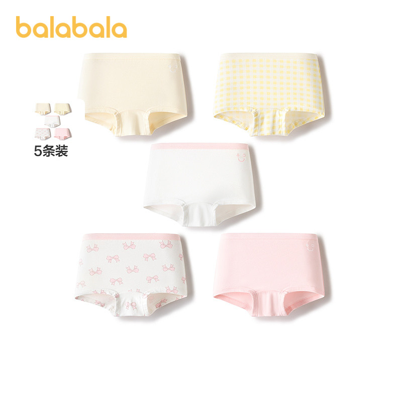 巴拉巴拉儿童内裤棉a类女童平角短裤小童中大童宝宝四角裤五条装