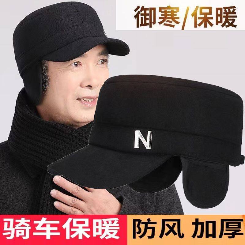 冬天爸爸平顶帽护耳老人帽中老年帽子男士秋冬季保暖爷爷老头棉帽