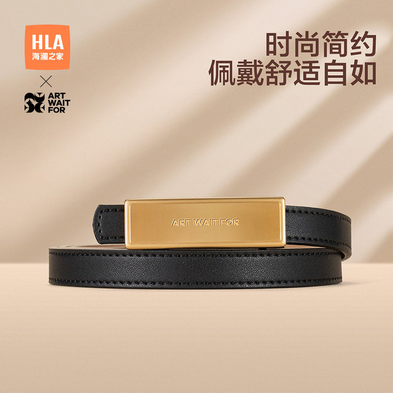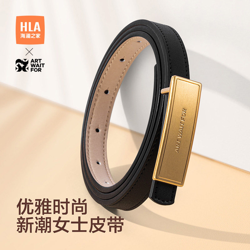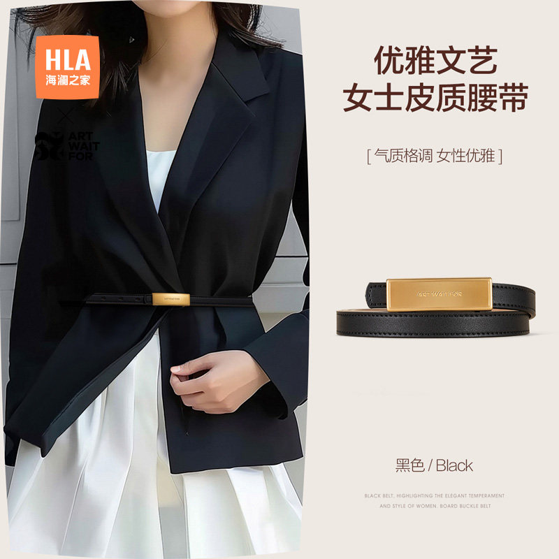 海澜之家女士真牛皮皮带板扣腰带时尚装饰腰链平滑扣裤带2025新款