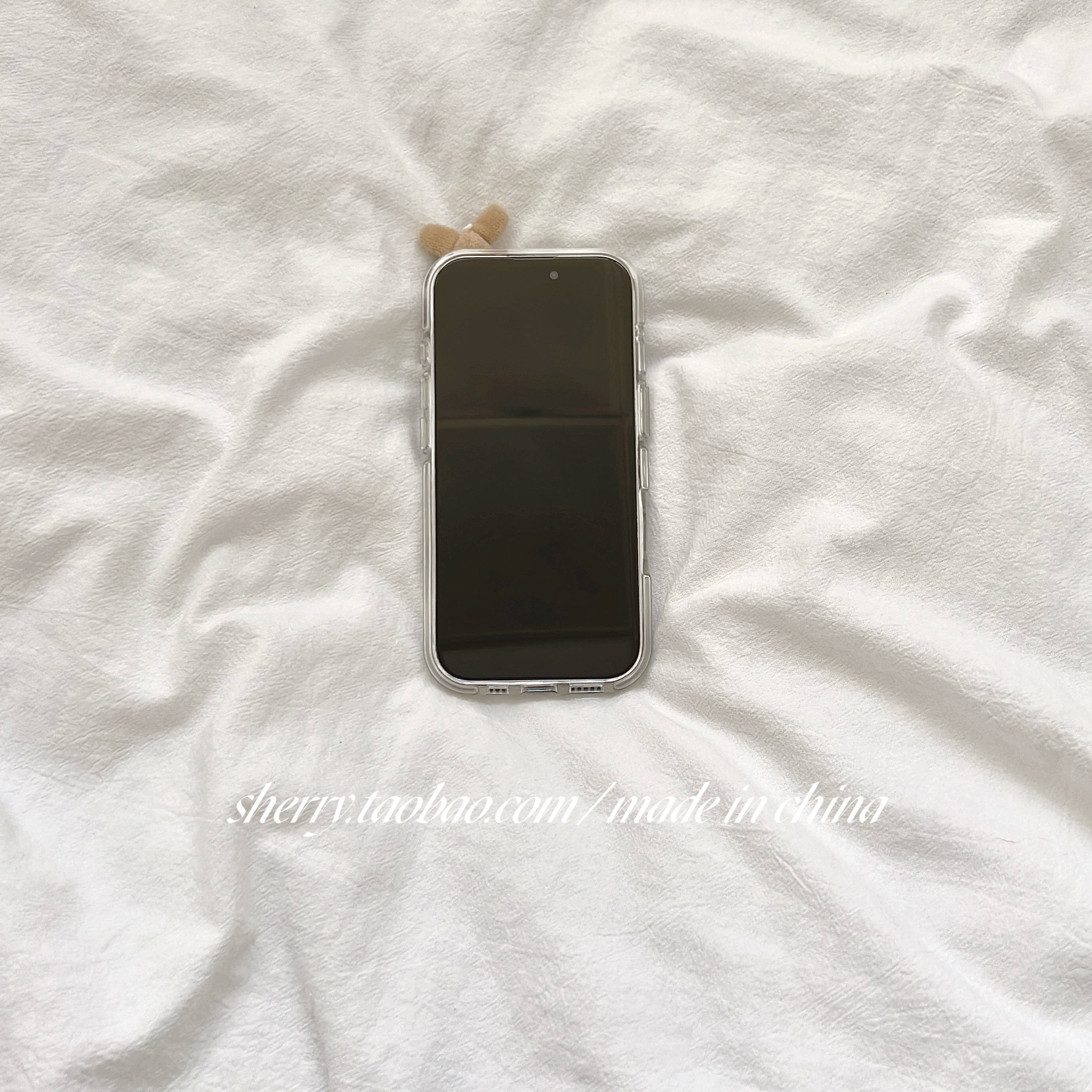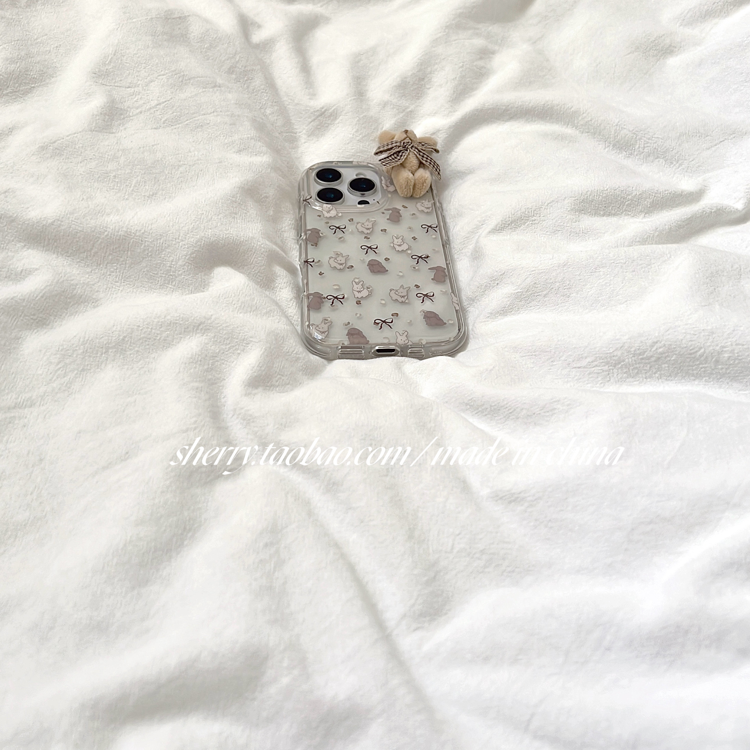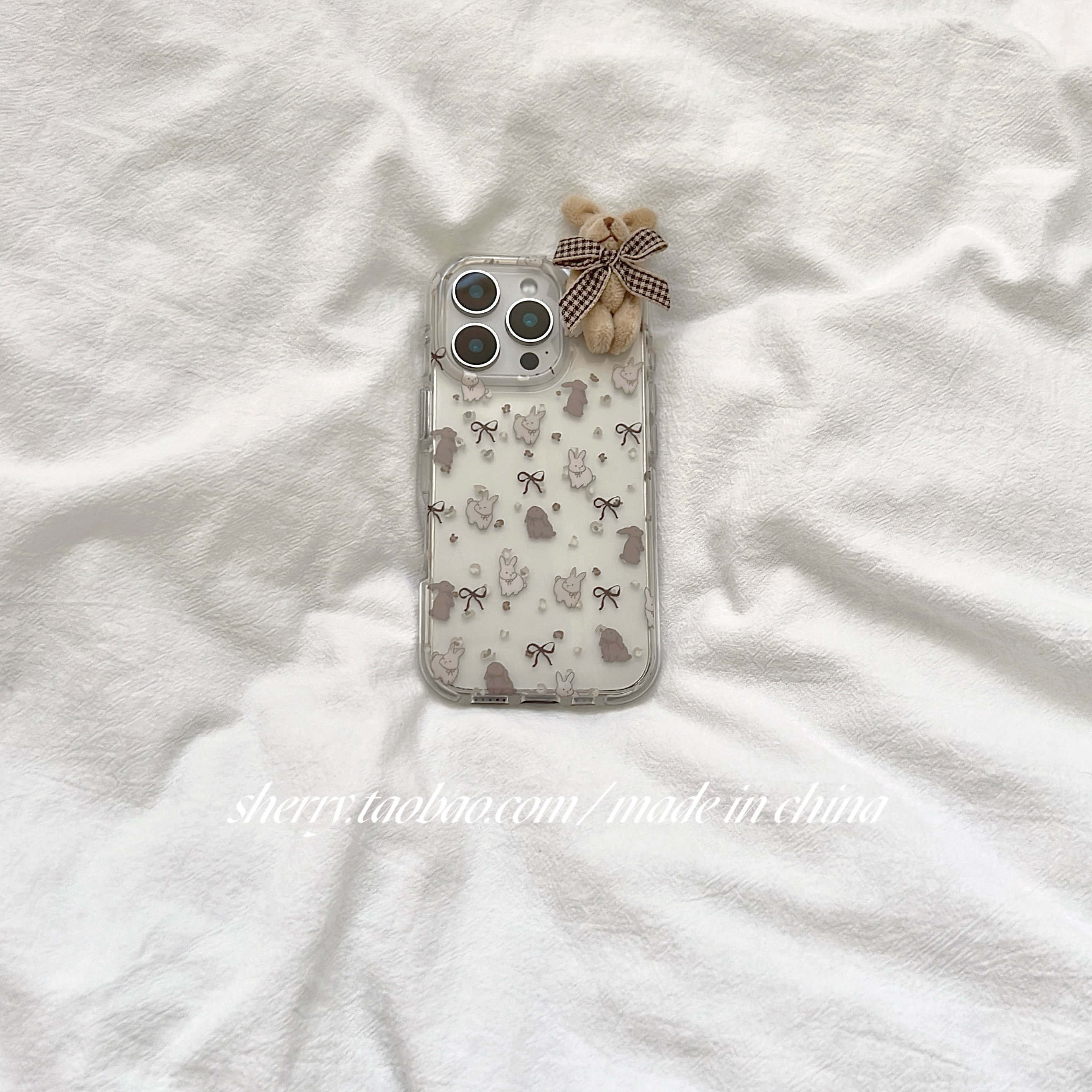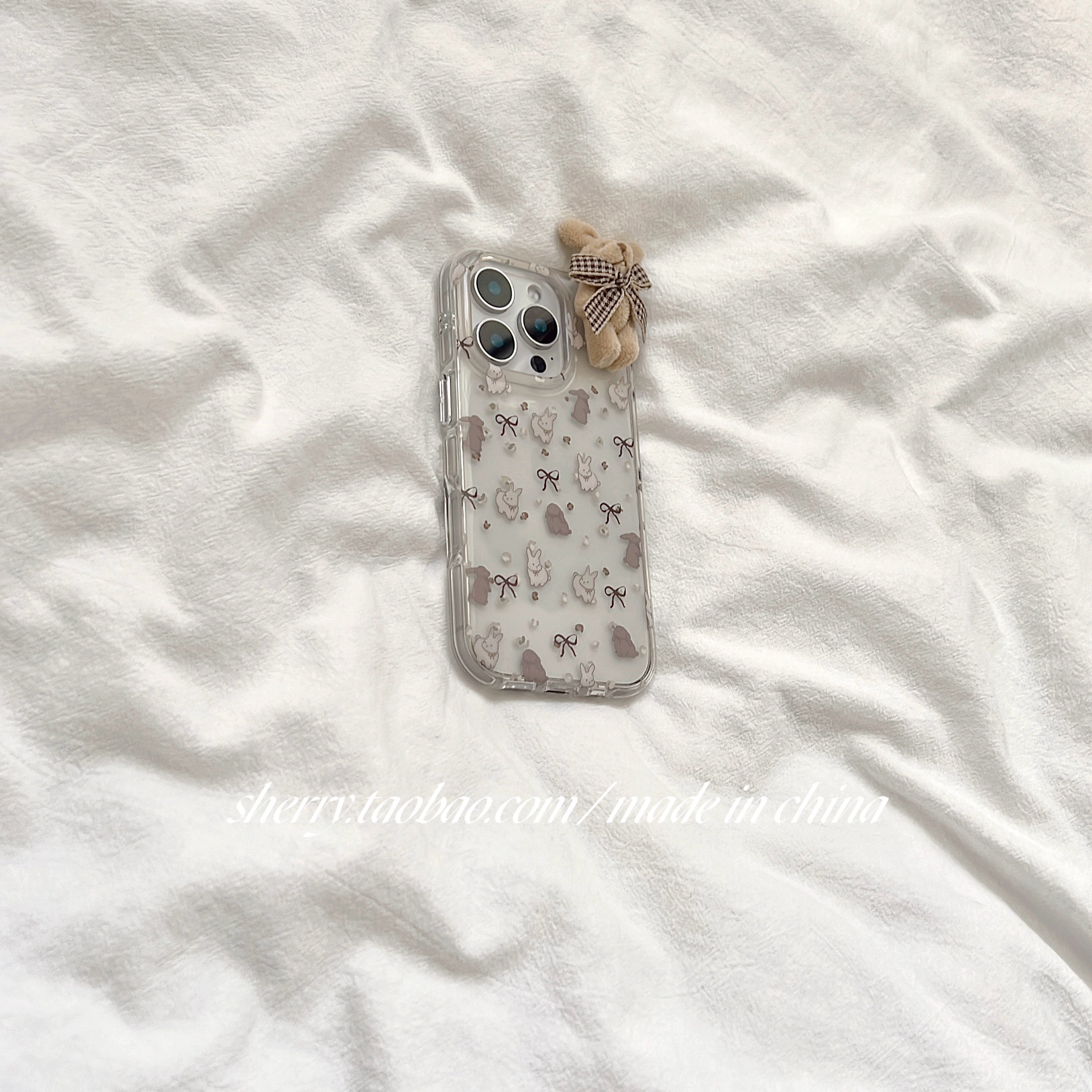 SHERRY*ins风甜美温柔半透蝴蝶结毛绒兔适用于苹果17ProMax手机壳iPhone16Pro小众少女心15简约14小清新可爱