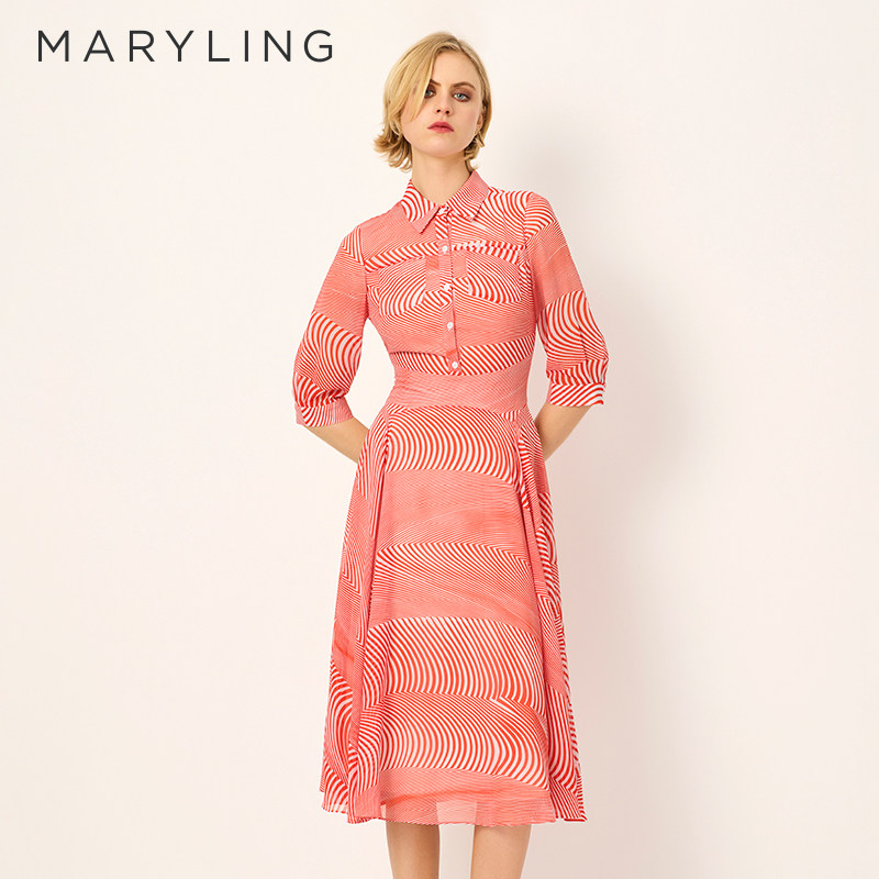 【欧普艺术】MARYLING玛俪琳25春新品衬衣式印花连衣裙A1FBW61750