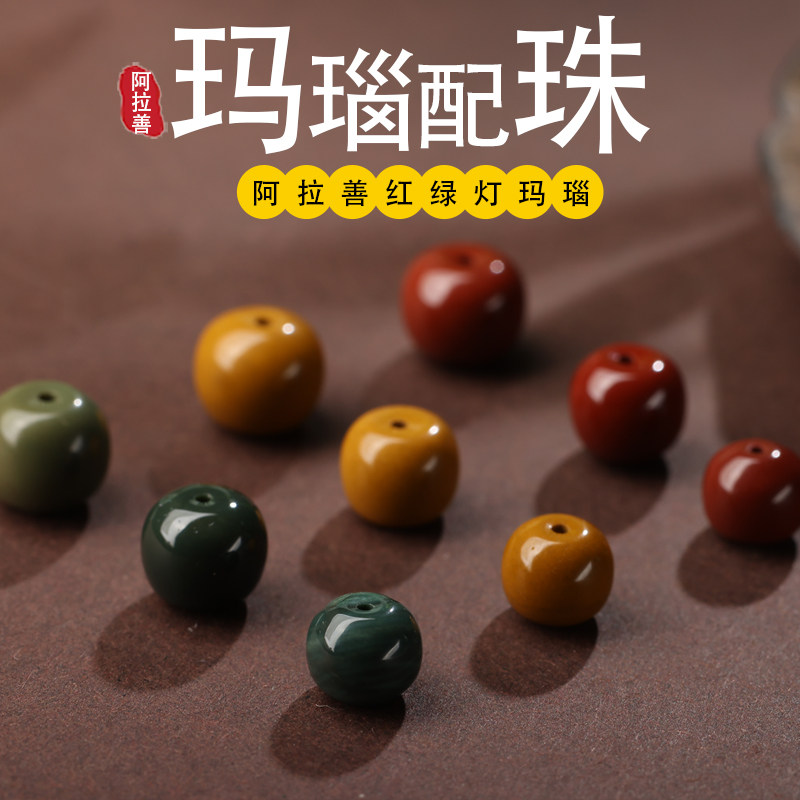 金刚玛瑙老型桶珠子星月黄灯diy阿拉善红绿佛珠文玩配饰件搭手串
