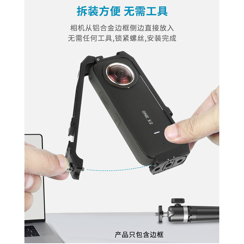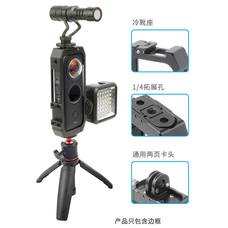 适用于Insta360 one x2 金属兔笼全景运动相机铝合金保护壳 1/4冷靴边框热靴扩展三脚架支架自拍杆自行车配件