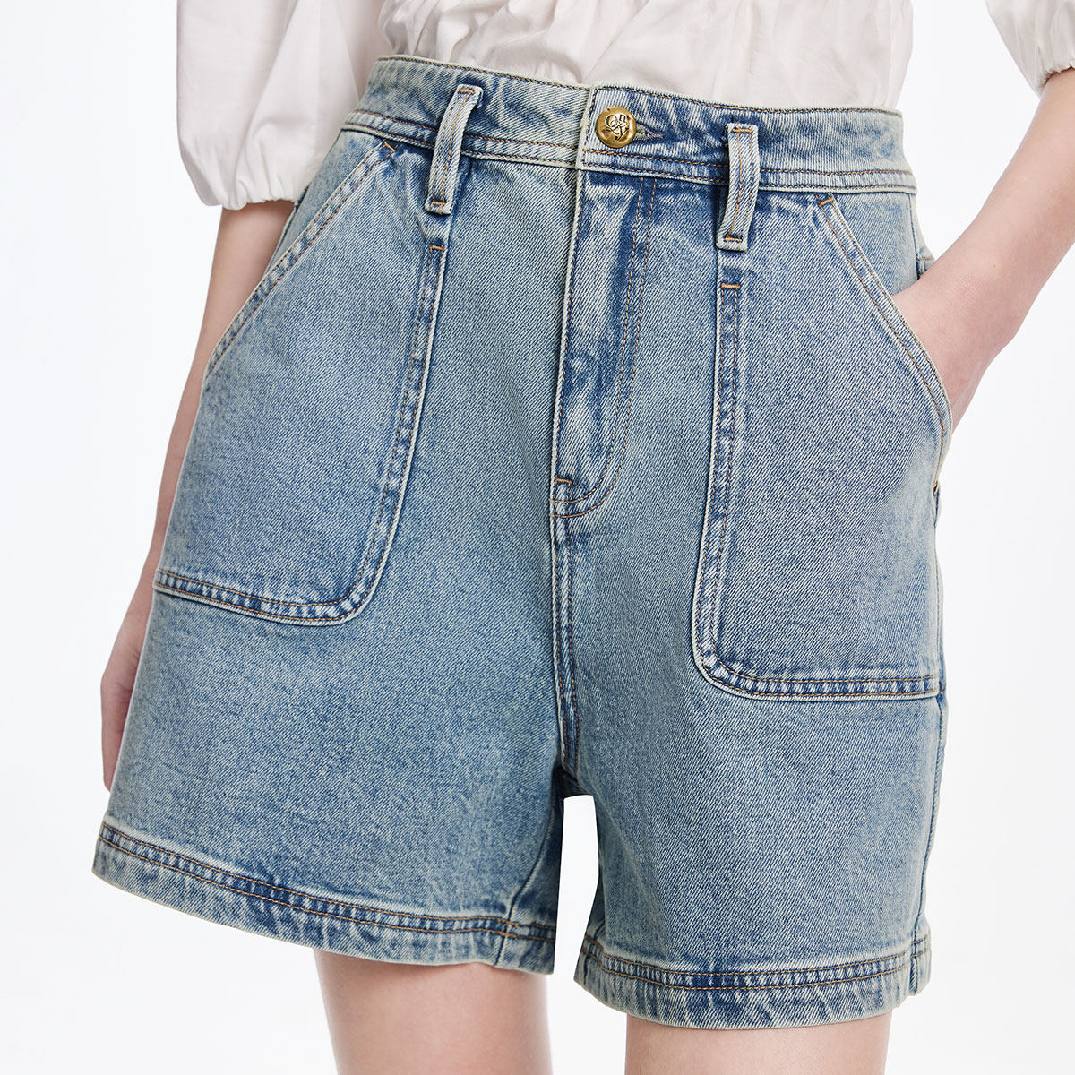ONLY2026春季新款高腰对称工装风口袋A字复古洗水短裤牛仔裤女