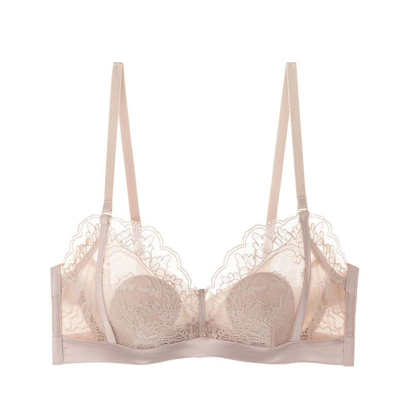润微茶肌内衣女士大胸显小薄款收副乳聚拢大码上托防下垂蕾丝文胸