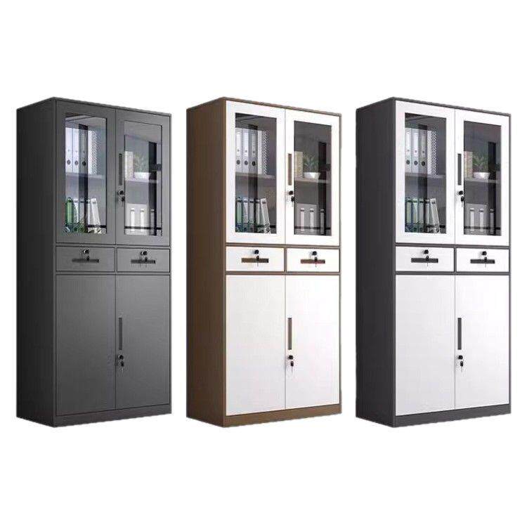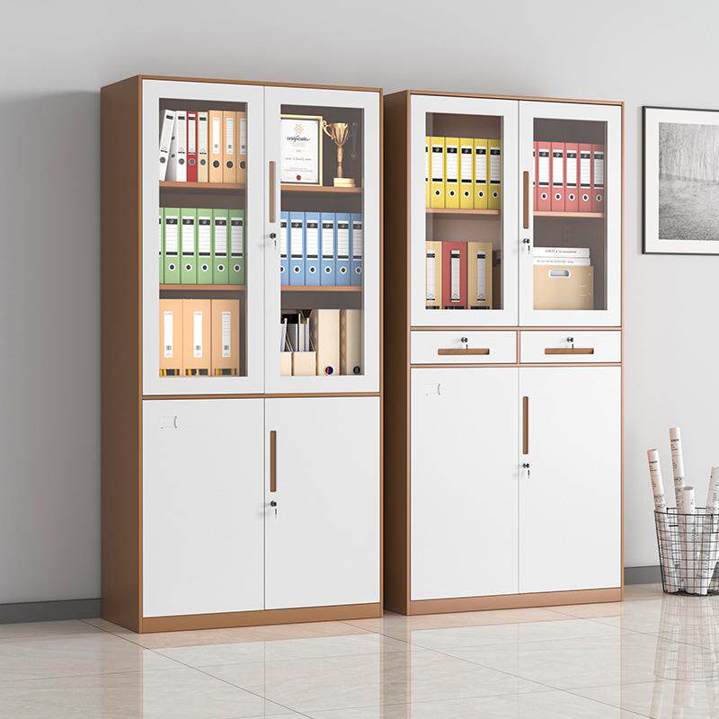 办公室文件柜档案柜拆装柜带锁储物柜窄边套色灰白咖白纯黑矮柜