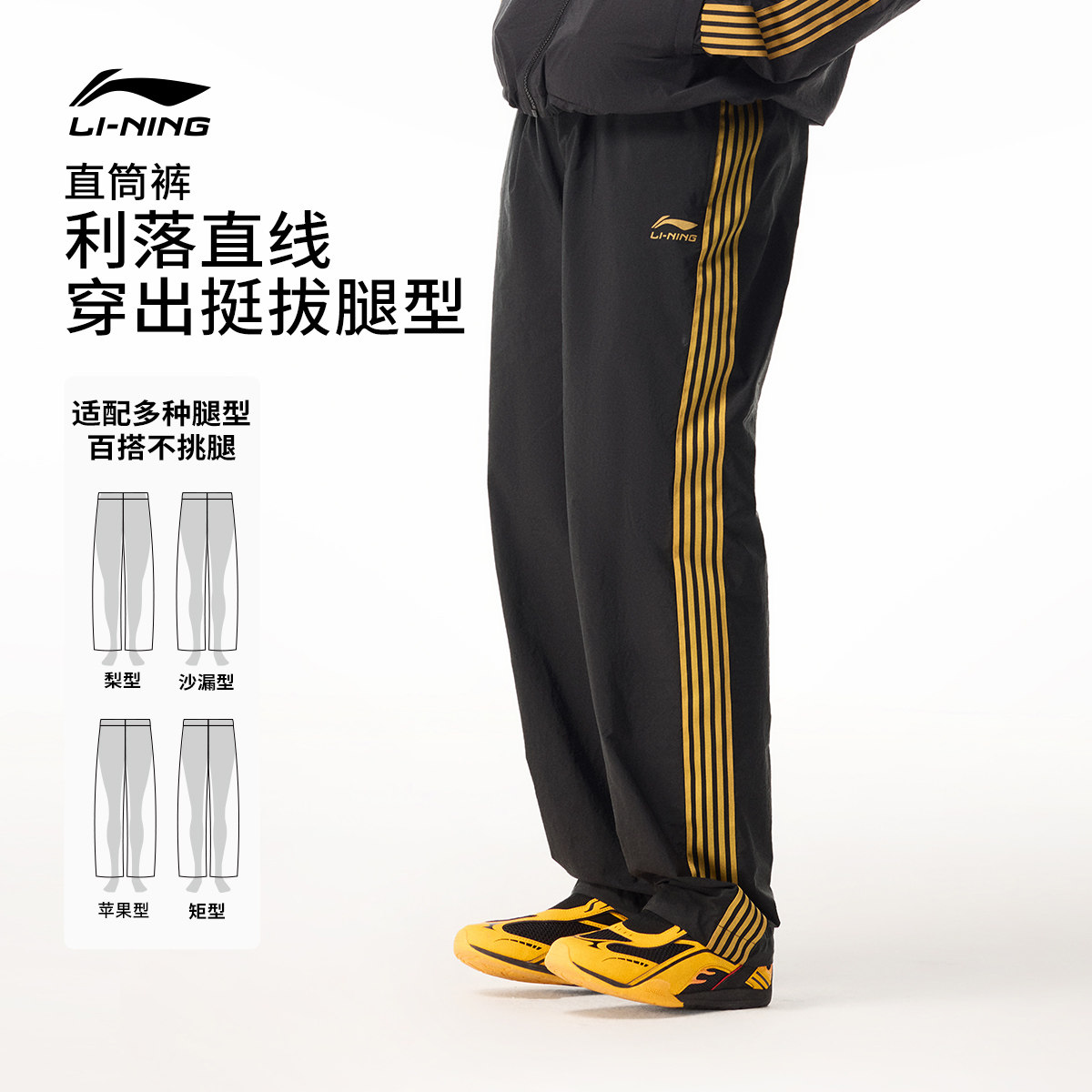 李宁运动裤男士2026新款校服裤子夏季宽松直筒球迷风休闲梭织长裤