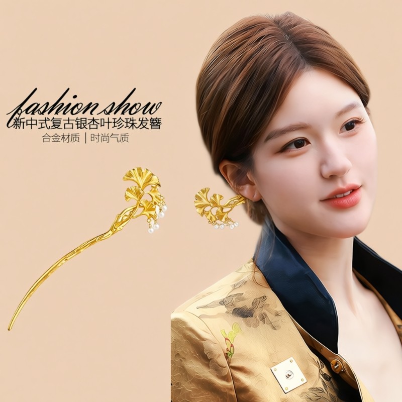 金色银杏叶发簪女新中式古风精致簪子精致气质发钗高级感盘发发饰