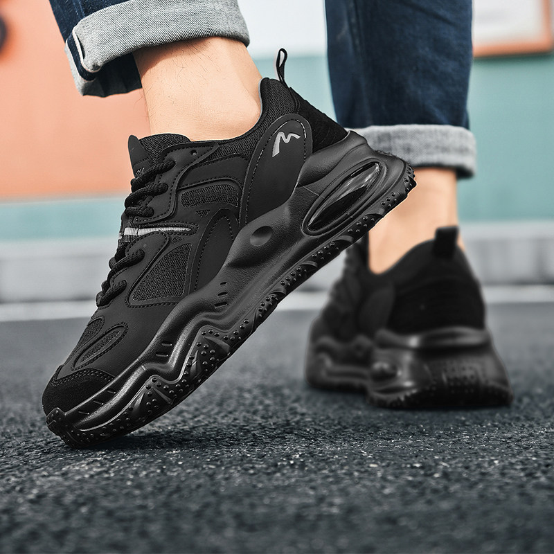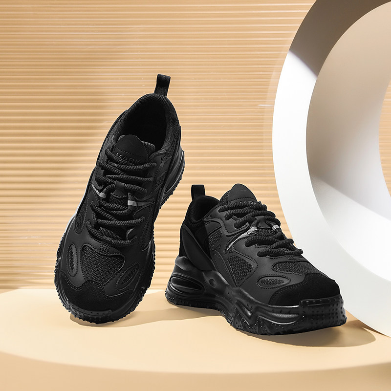 马克华菲男鞋2025夏季新款透气运动鞋男款黑色复古老爹鞋百搭鞋子