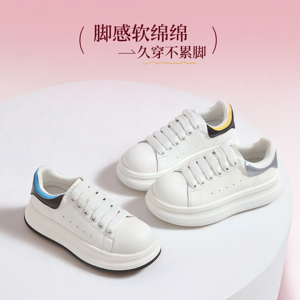 骆驼女鞋2026春季圆头皮面板鞋休闲运动鞋增高厚底小白鞋男