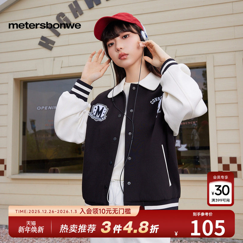 美特斯邦威棒球服外套女春季新款经典翻领设计甜酷宽松学院风上衣