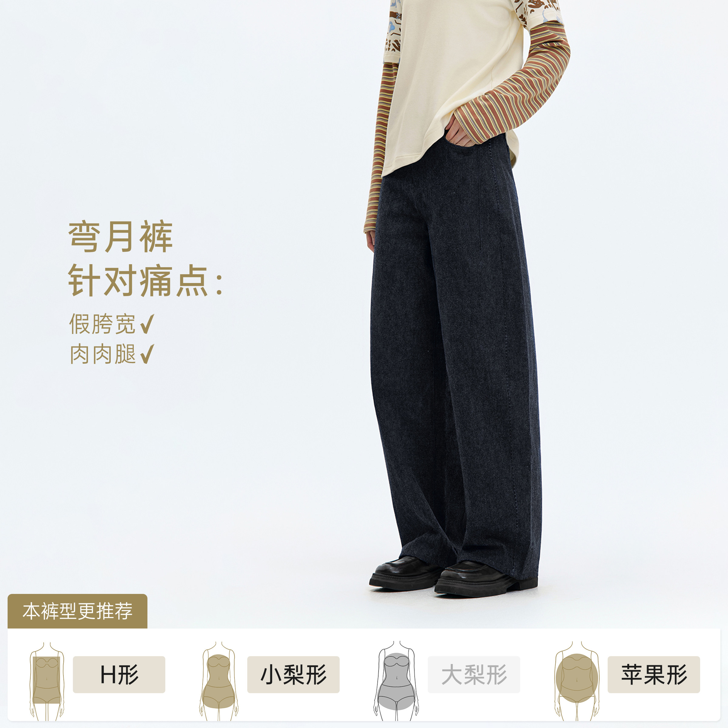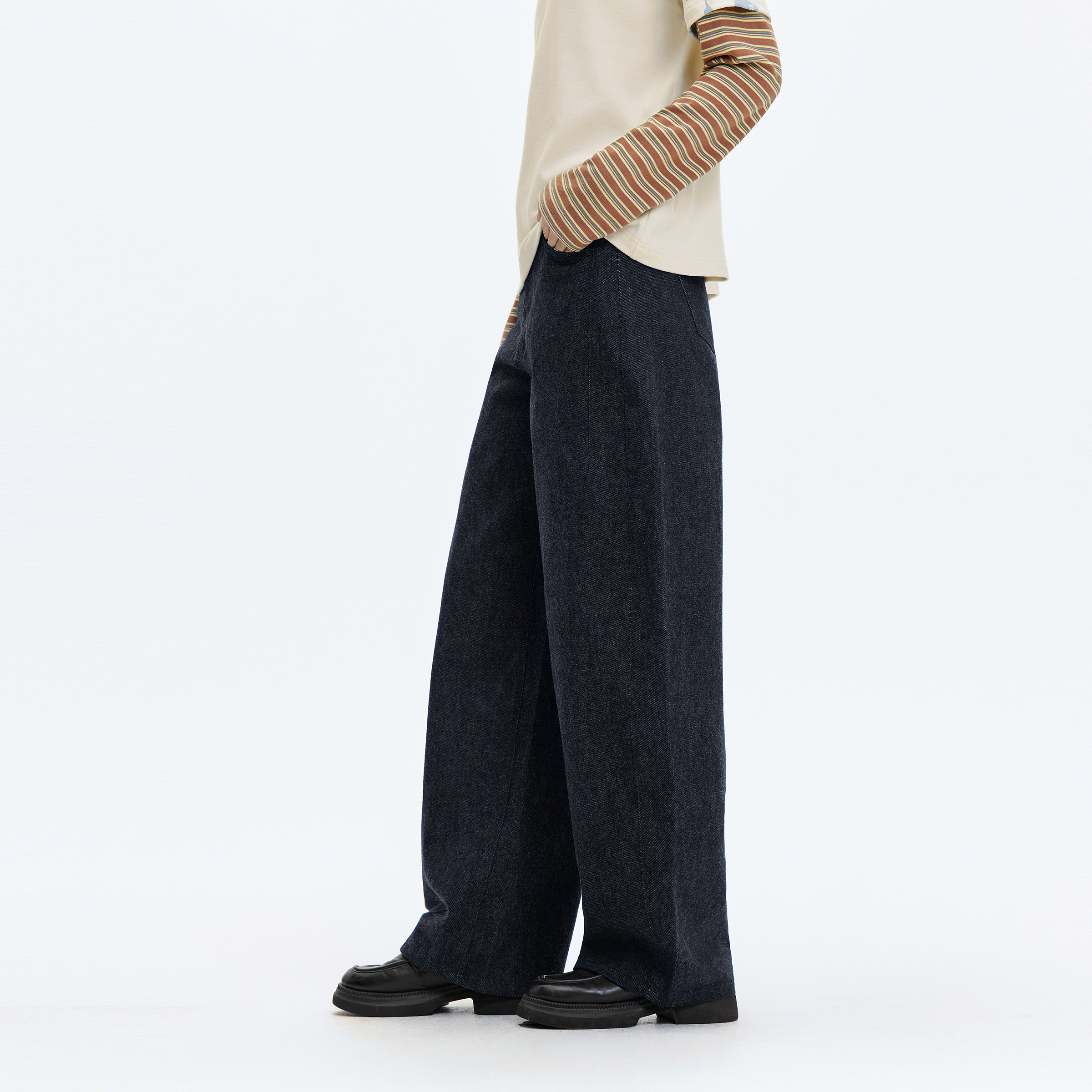 艾恩晟 2025早春美式宽松垂感牛仔阔腿裤深蓝色系慵懒风ins博主风