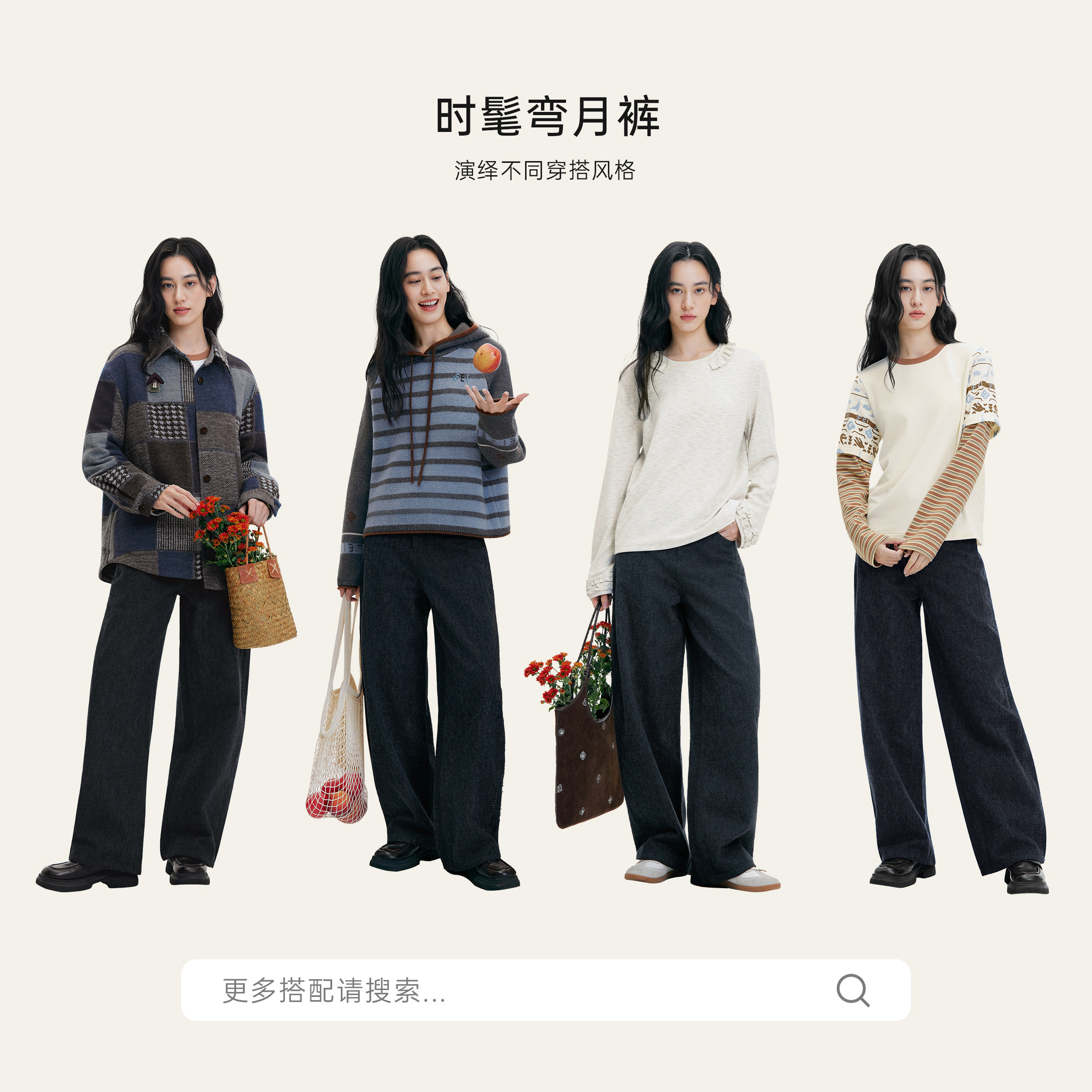 森柔牛仔|商场同款森马牛仔裤女翻边长裤2025秋季新款宽松阔腿裤