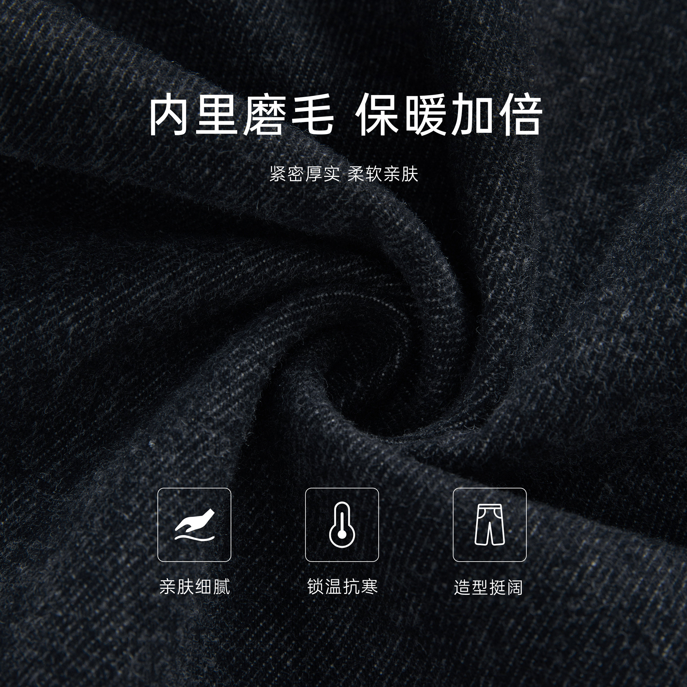 森柔|森马牛仔裤女冬摇粒绒保暖直筒裤高腰2025新款酷飒风拖地裤