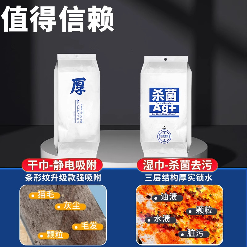 静电除尘纸拖地湿巾拖把一次性吸尘免洗湿纸巾擦地纸家用拖布地板