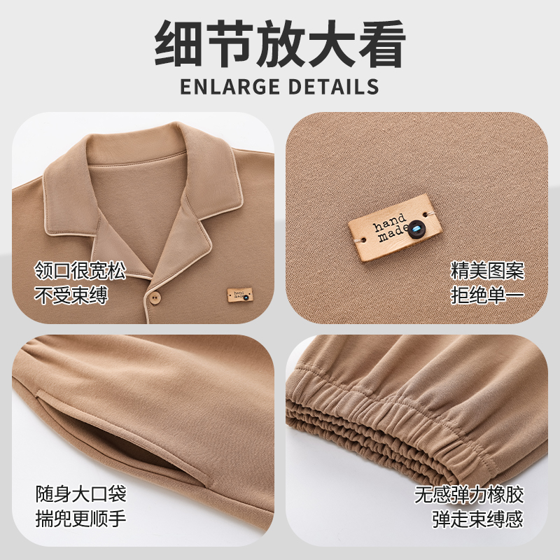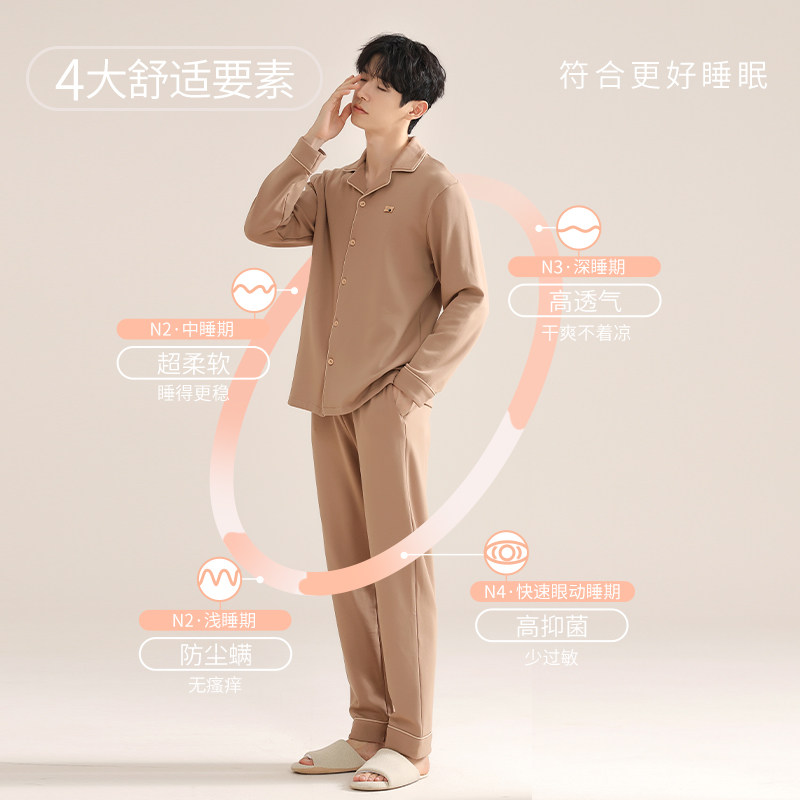 安比斯情侣睡衣舒适纯棉秋季女长袖男女同款休闲家居服套装可出门