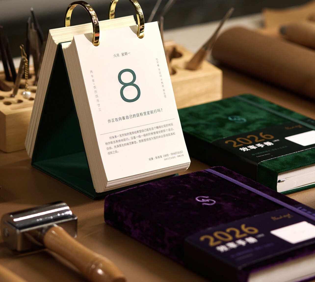 定制台历2026年新款办公室商务月历桌面摆件马年工作打卡日历皮面本创意简约风考研公司印刷内页企业可印logo