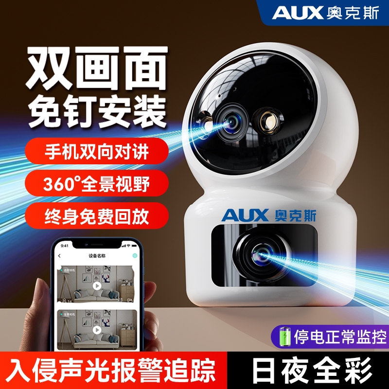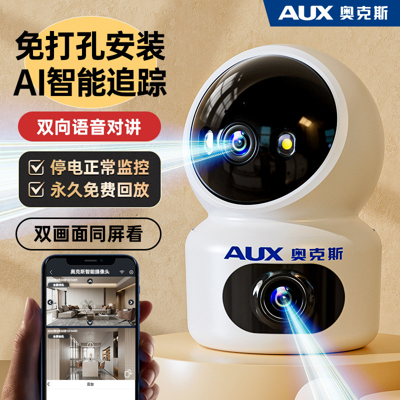 奥克斯2026家用监控摄像头室内360度无死角手机远程无需网络摄影