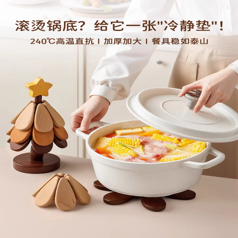 圣诞树隔热垫创意餐垫桌杯垫实木防烫耐高温锅垫餐边柜摆件装饰品