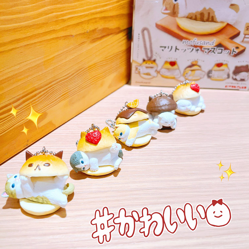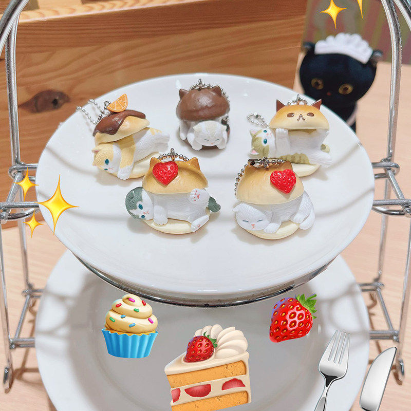 日本正版奇谭KITAN 猫福珊迪生乳包夹心面包扭蛋 汉堡包猫挂件
