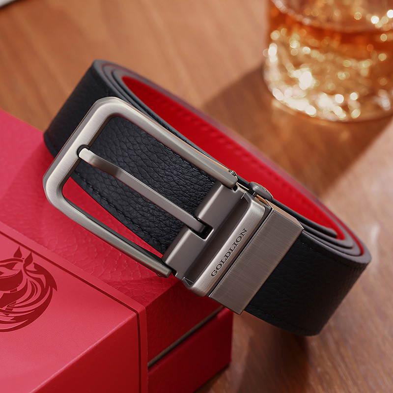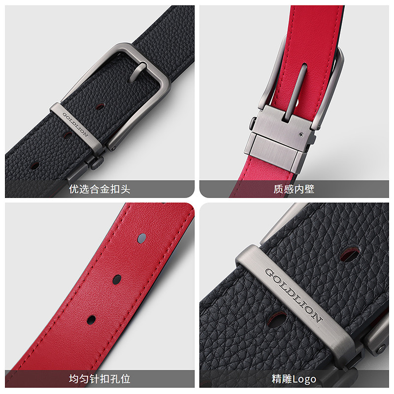 【本命年】金利来皮带男新款时尚双面针扣头层牛皮简约商务红腰带