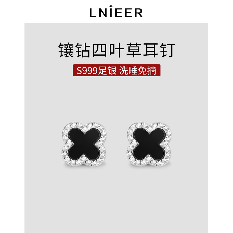 S999纯银四叶草耳钉女2025爆款轻奢高级感气质耳环百搭养耳洞耳饰
