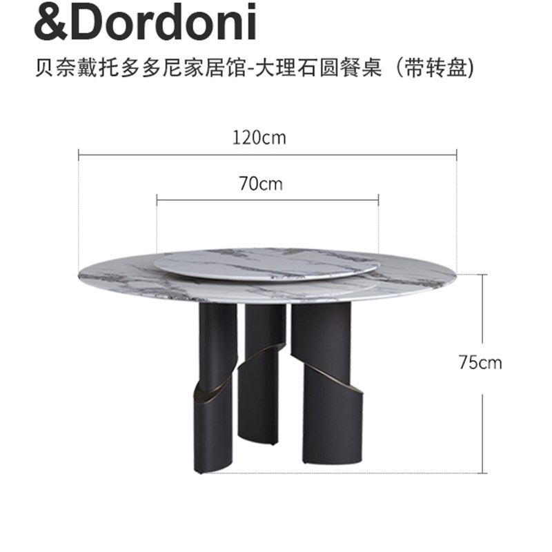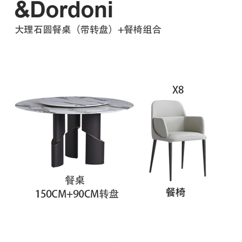 天然大理石餐桌轻奢高级感圆形桌子意式轻奢家用带转盘圆桌椅组合