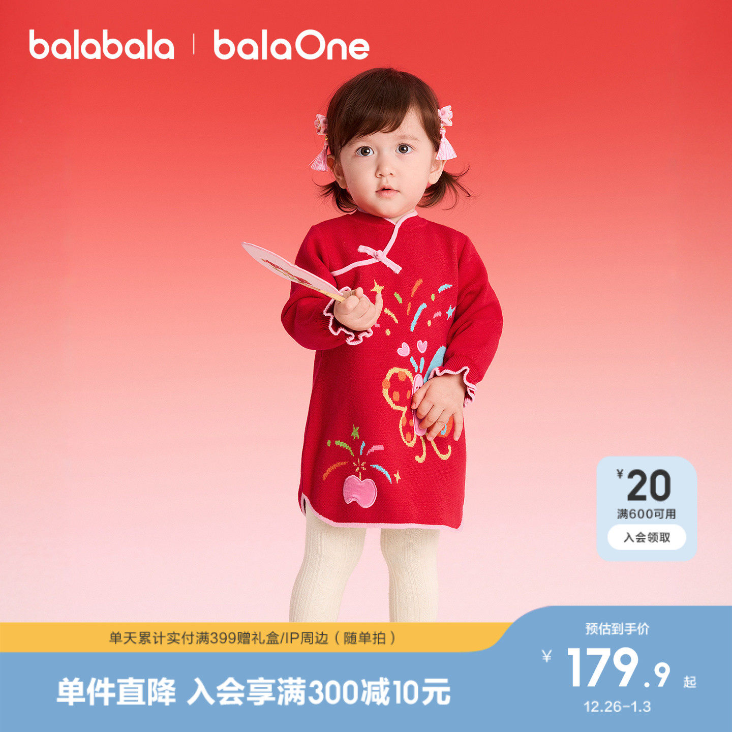 巴拉巴拉童装儿童拜年服女童连衣裙2025秋冬装新款新中式针织旗袍