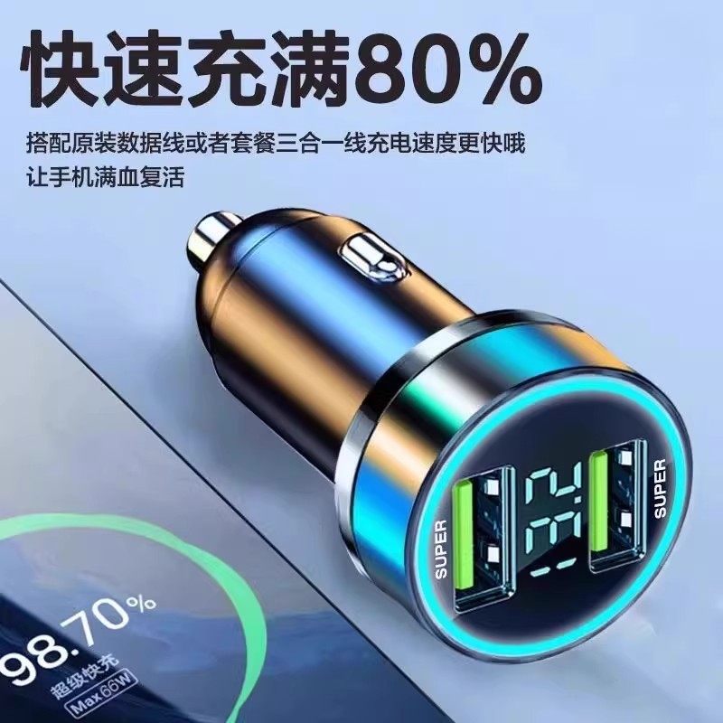 隐形车充车载手机充电器超级快充苹果安卓汽车一拖二点烟器闪充头