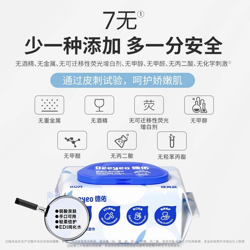 德佑湿巾正品大包80抽无酒精消毒新生儿亲肤加厚婴幼儿手口湿纸