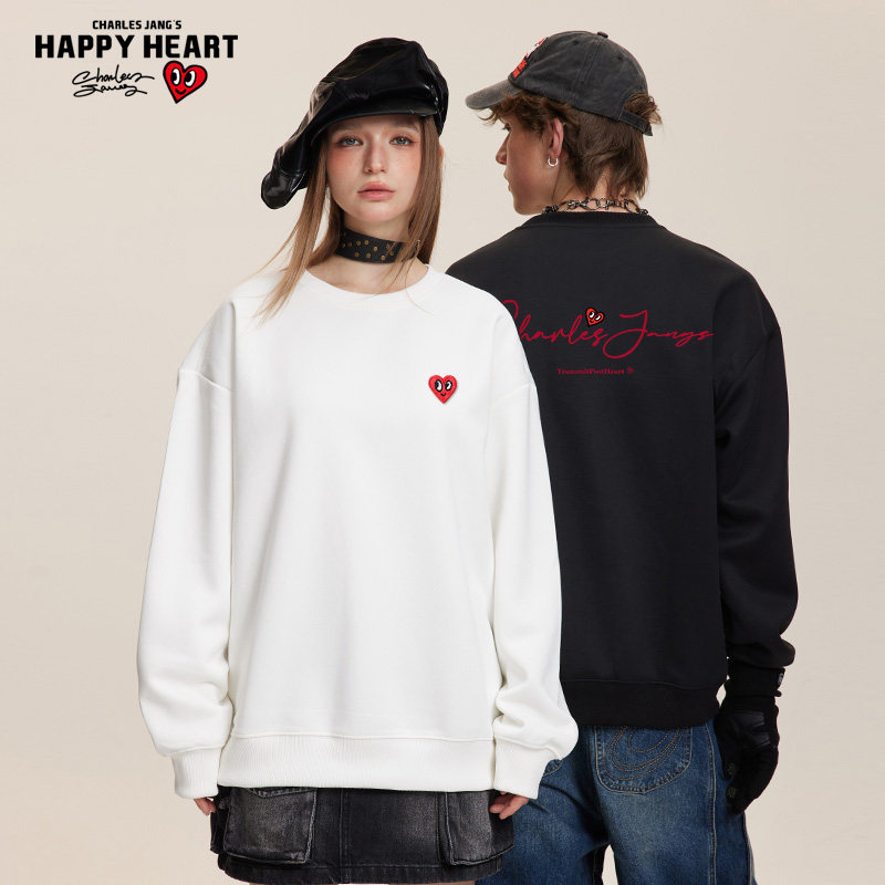 查尔斯桃心 卫衣男圆领春秋季新款手绘字母印花百搭潮牌套头上衣