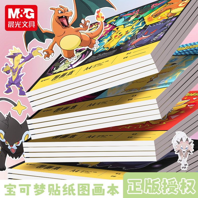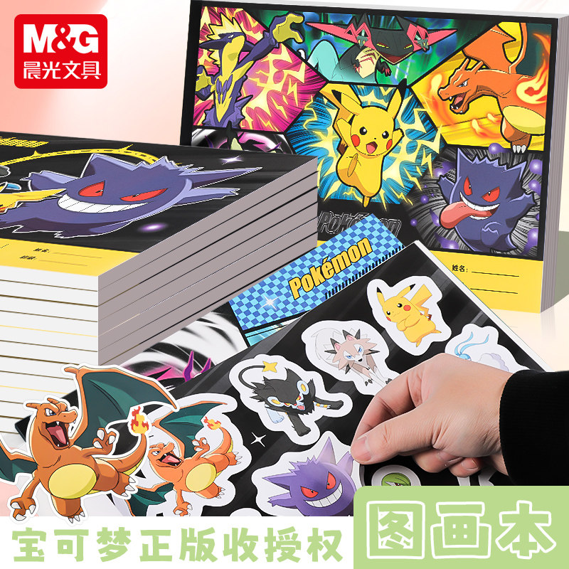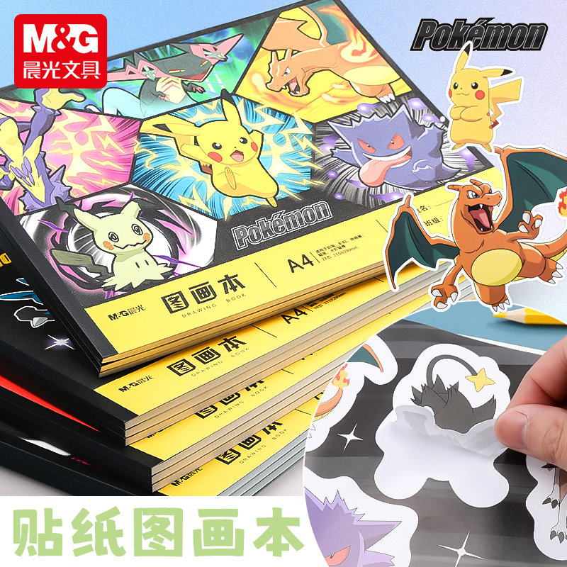 正品晨光联名宝可梦图画本A4空白页画画纸28页内附宝可梦贴纸幼儿园小学生美术绘画涂鸦用皮卡丘儿童画画本