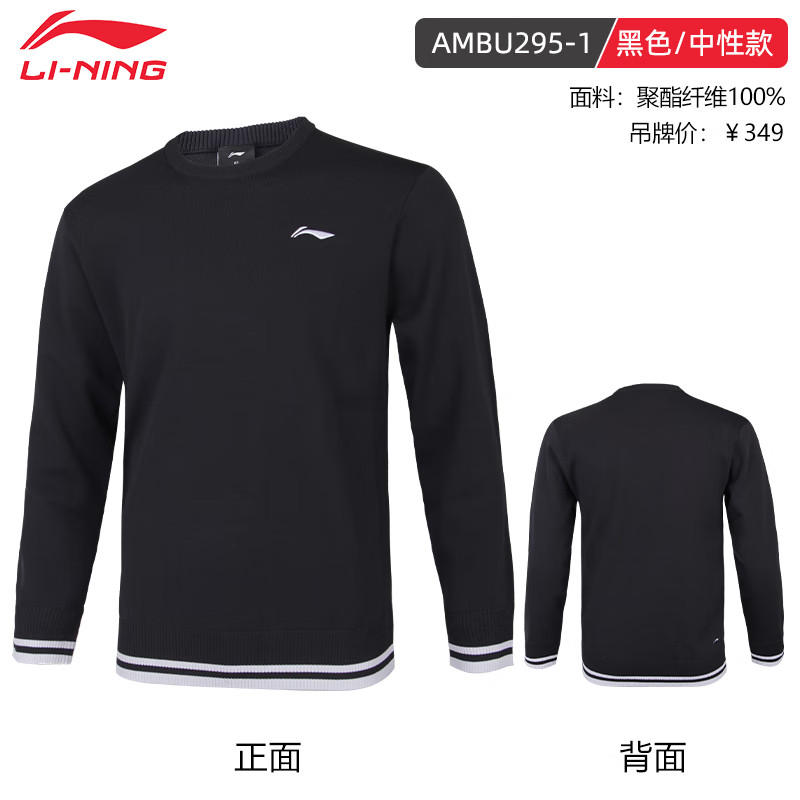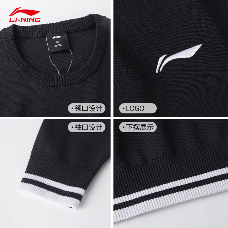 李宁羽毛球服套头无帽编织衫男女同款卫衣长袖圆领上衣秋冬打底衫