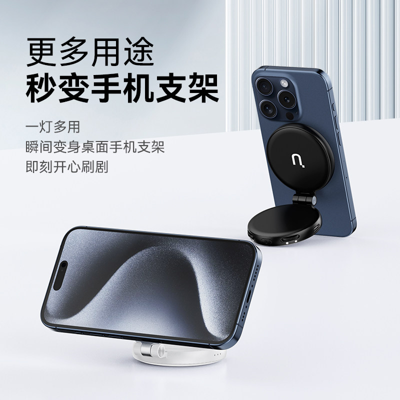 Ulanzi优篮子Magsafe磁吸熊猫灯三色温补光灯手机拍照直播柔光美颜打光适用苹果iphone16/15/14自拍摄影神器