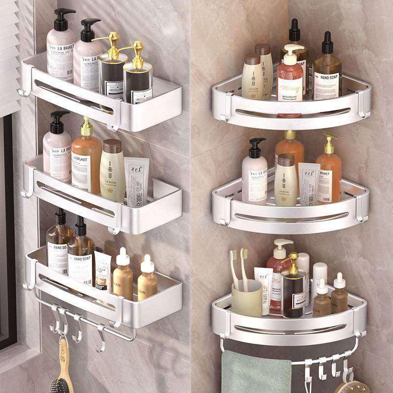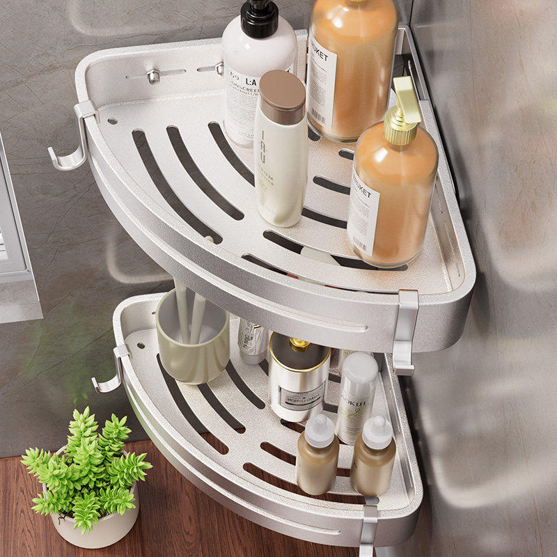 卫生间置物架太空铝三角四角架浴室转角架厕所壁挂收纳打孔免打孔