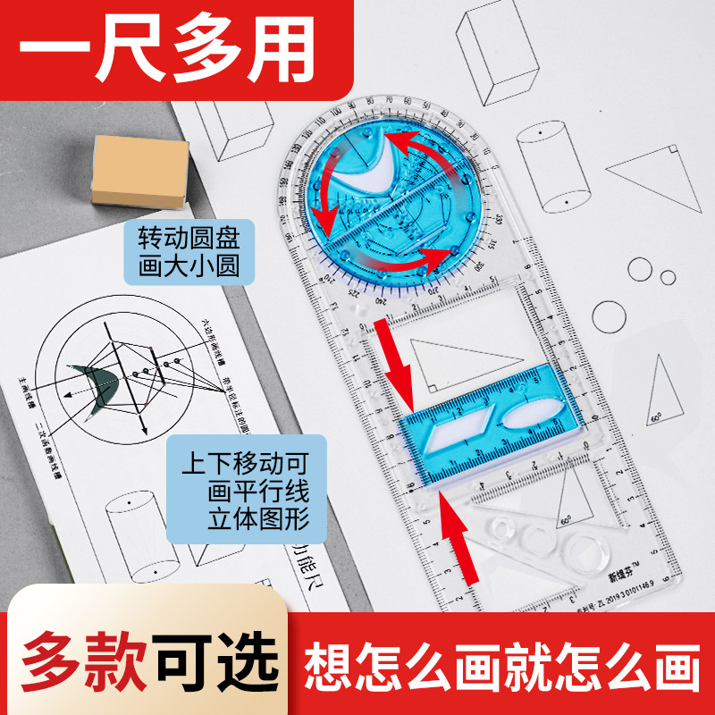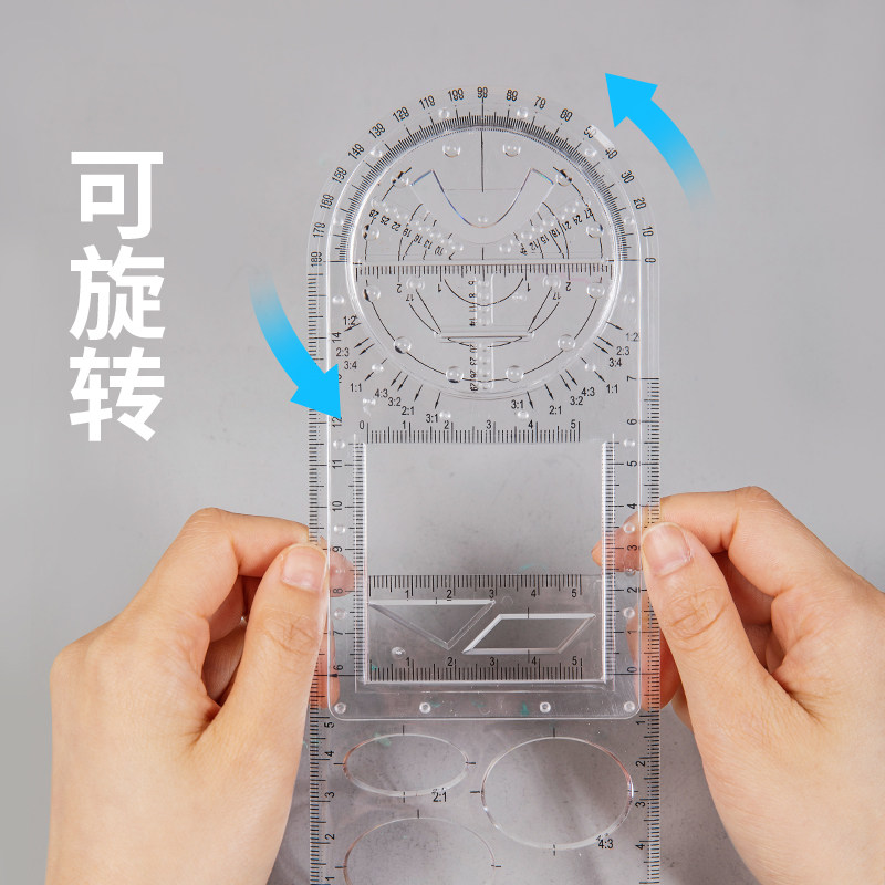 爆款网红多功能尺子可旋转学生数学设计绘图