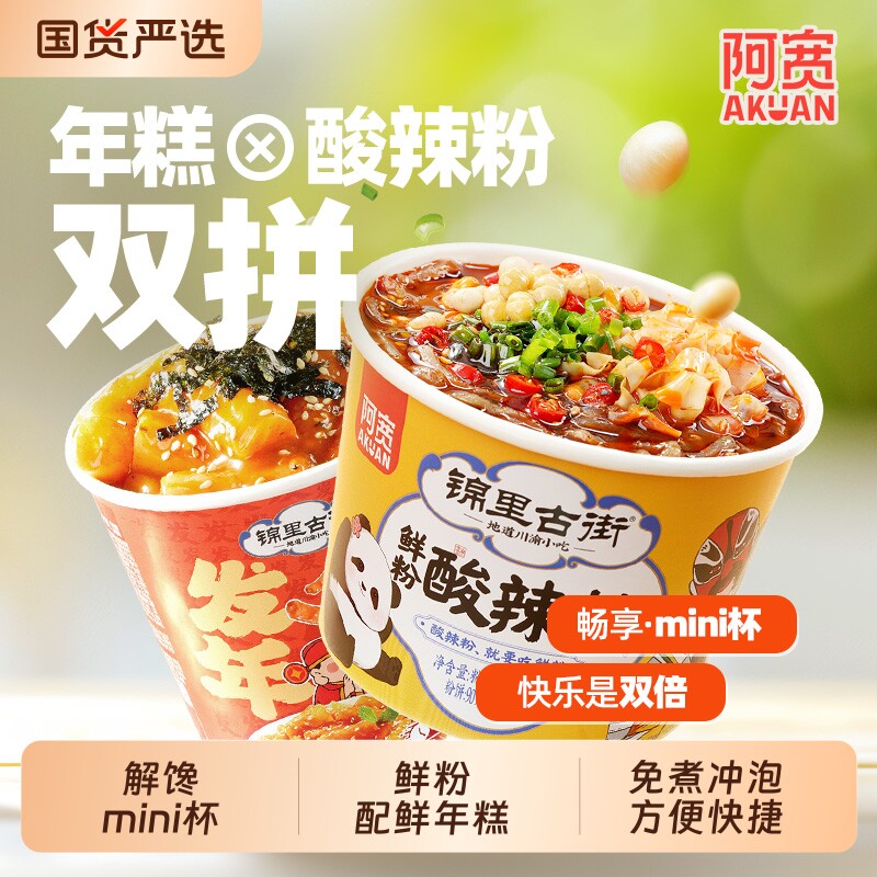 阿宽锦里古街鲜粉酸辣粉发财年糕桶装粗粉湿粉炒年糕方便速食冲泡