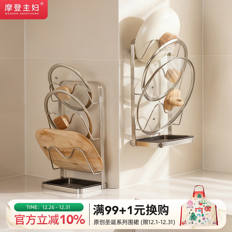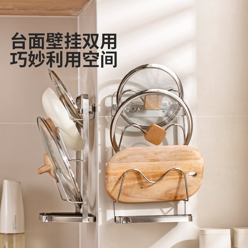 摩登主妇304不锈钢锅盖架厨房置物架子壁挂式收纳菜板锅盖放置器