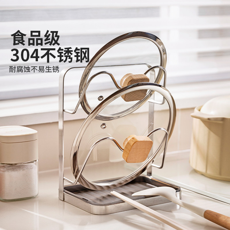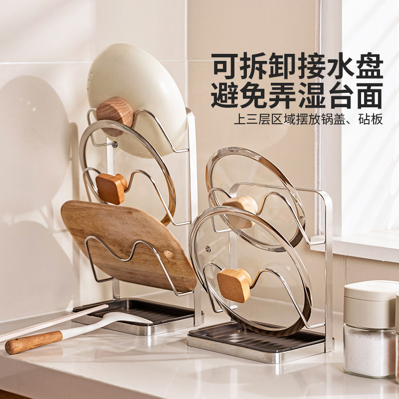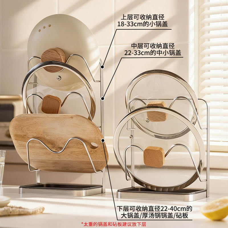 家用放锅盖砧板收纳架锅铲置物架锅盖架坐式厨房台面盘放置切菜